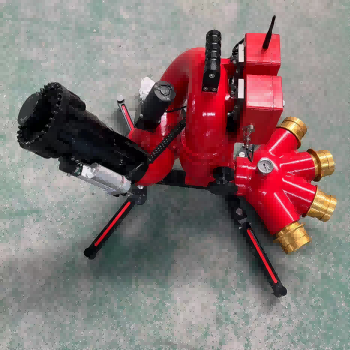 該炮具有體積小,重量輕,支撐腳可折疊,操作簡便,靈活可靠,儲存運輸方便輕松等特點。該炮功能齊全、射程遠,炮身和炮頭可進行遠距離遙控操作。有利于作業(yè)人員遠離現(xiàn)場,有效的避免了對作業(yè)人員的危害性。該系統(tǒng)炮同時安裝了手動裝置,以備無電源時進行手工操作。材料采用鋁合金,表面硬質(zhì)氧化和噴漆處理。