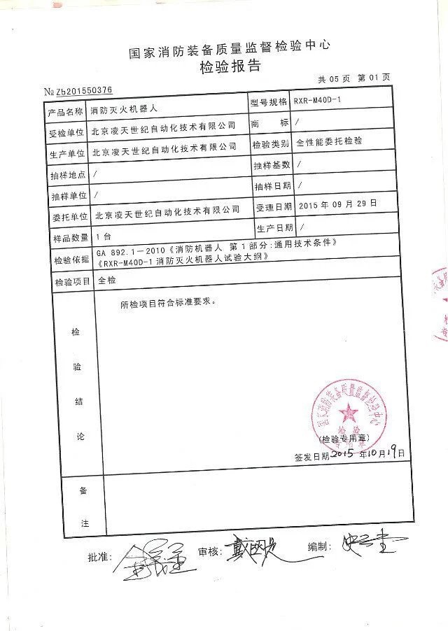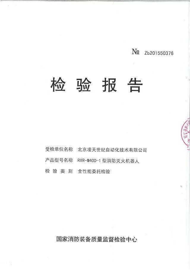北京凌天消防滅火機(jī)器人通過國(guó)家消防裝備質(zhì)量監(jiān)督檢驗(yàn)中心檢驗(yàn)
