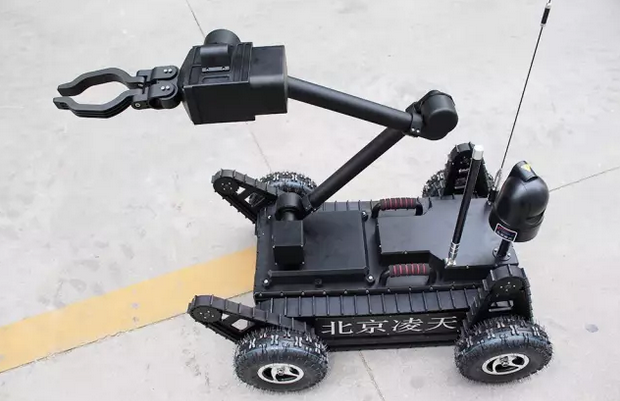 機械臂部分配備爆炸物銷毀器、瞄準(zhǔn)器,能現(xiàn)場對爆炸物進行摧毀;