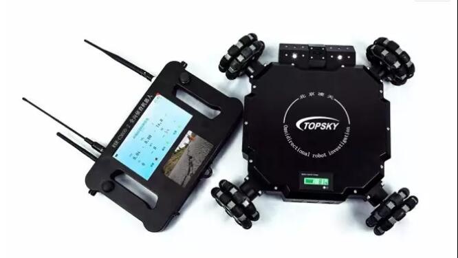 四輪全方位升降偵察機器人是一款集全方位視頻監(jiān)控、可升降云臺、有毒有害氣體探測系統(tǒng)為一體的移動偵查平臺。體積小,有較強的攀爬和越障性能,可部署在狹小空間,威脅、危險區(qū)域執(zhí)行隱秘偵察和監(jiān)測任務(wù)。配裝的后場手持終端實時顯示移動端全景圖像,操作人員可以隱蔽觀察控制,通過手持端圖像或數(shù)據(jù)信息完成前端環(huán)境判斷,降低了在建筑物、地下室、山洞、隧道、街巷和可疑氣體泄漏區(qū)域內(nèi)行動的危險性。
