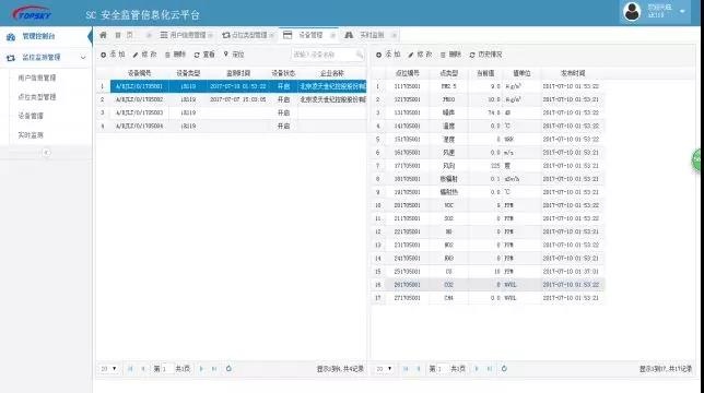 通過部署前端一體化預警防控系統(tǒng),可將現(xiàn)場所有檢測到的?;瘹怏w數(shù)據(jù),實時上傳遠程危險環(huán)境監(jiān)測系統(tǒng)中,由系統(tǒng)統(tǒng)一管理,存儲,分析,打印形成報告。