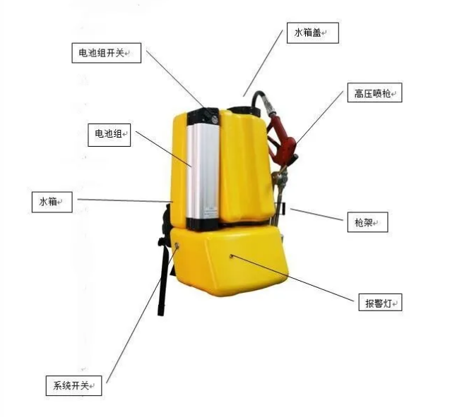 本產(chǎn)品是電機驅(qū)動水泵產(chǎn)生一定壓力的水流,通過對水流壓力和流量的控制后,再通過可產(chǎn)生細水霧的專用噴槍噴出進行滅火的裝置。改裝置設(shè)置了限壓限流、缺水保護、欠壓提醒等多種保護。系統(tǒng)沒有壓力容器。徹底解決了使用壓力容器的安全隱患。
