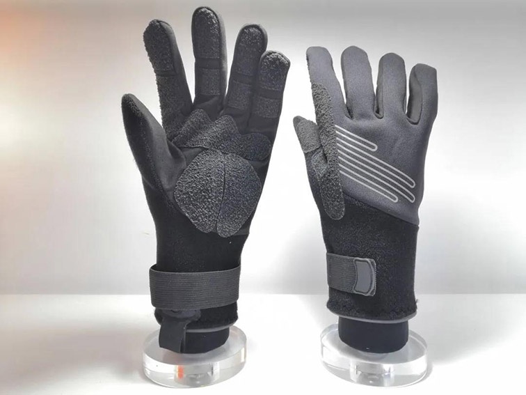 2.手心為合成皮革,并使用芳香尼龍纖維加強,增強耐磨性,手背由2mm厚的氯丁橡膠制成,起到保暖的作用,并加有2mm厚的襯墊,提供了額外的保護。
