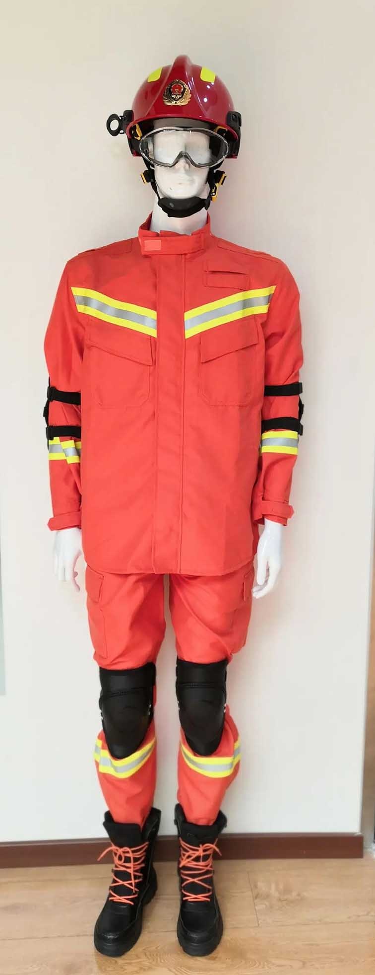 消防員搶險救援防護服用于建筑物倒塌、狹窄空間及攀登等救援現(xiàn)場的身體防護,采用國際上通用的結構形式,使用國外引進的紡紗、織造、縫紉和檢測設備,用先進的紡織、整理工藝加工而成。