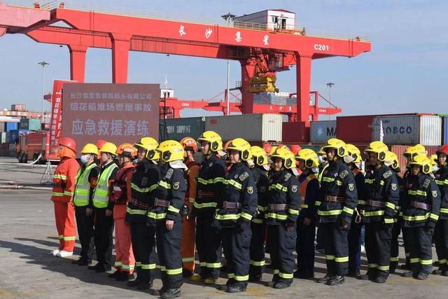 這是由省湘水集團(tuán)指導(dǎo),湖南省港務(wù)集團(tuán)主辦的一次煙花爆竹集裝箱堆場(chǎng)燃爆事故應(yīng)急救援演練。