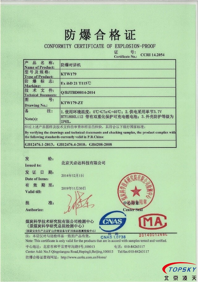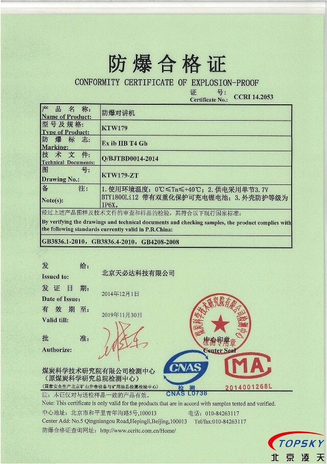 【氫氣級(jí)】防爆對講機(jī)取得化工、粉塵認(rèn)證