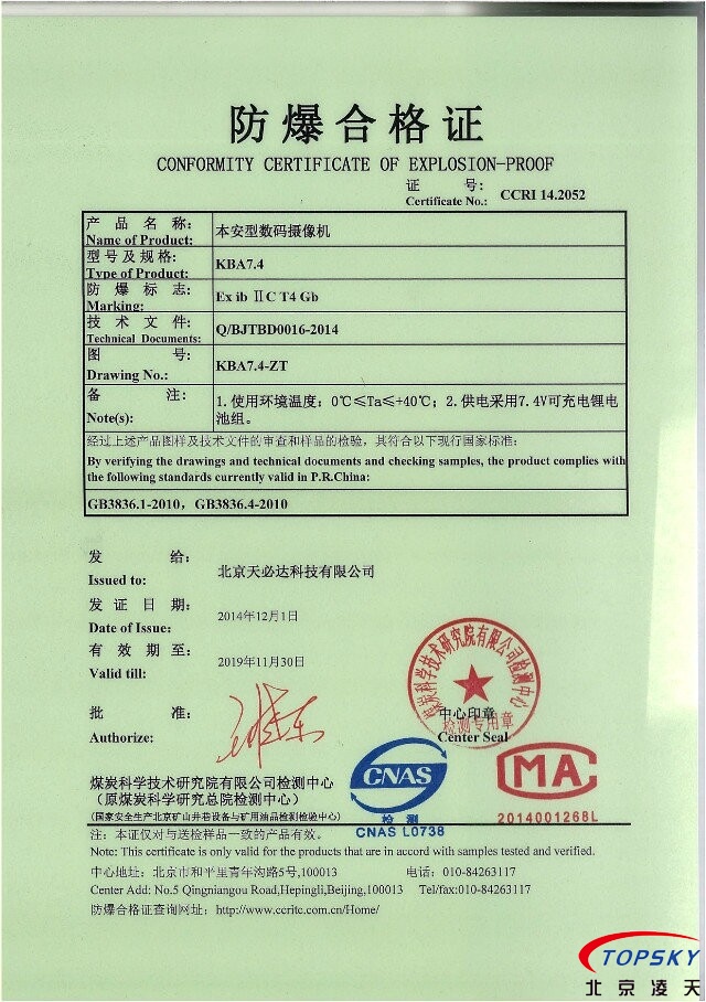 【氫氣級(jí)】防爆數(shù)碼攝像機(jī)取得化工防爆認(rèn)證