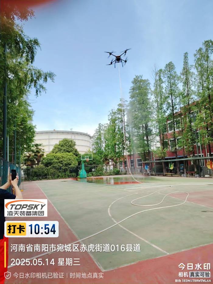 LT-F50-MH陸空兩棲高層建筑系留滅火無人機,是我公司針對城市高層消防需要而最新自行設(shè)計的,該無人機通過高空噴水滅火作業(yè),充分實現(xiàn)了操作人員與火災(zāi)現(xiàn)場遠距離分隔的優(yōu)點,能很好地保護滅火人員的人身安全。該無人機具有結(jié)構(gòu)新穎,性能穩(wěn)定可靠,操作靈活,維修方便、噴水距離遠、流量大等特點,同時,該無人機具備陸空兩棲功能,可以在地面行駛。該無人機可裝載在消防車上,能快速啟動升空,通過特制高壓水帶與消防車水罐連接,消防車水罐內(nèi)部高效泡沫/水基滅火劑輸送到無人機平臺,在水槍噴口水平噴射出去,達到滅火的效果。