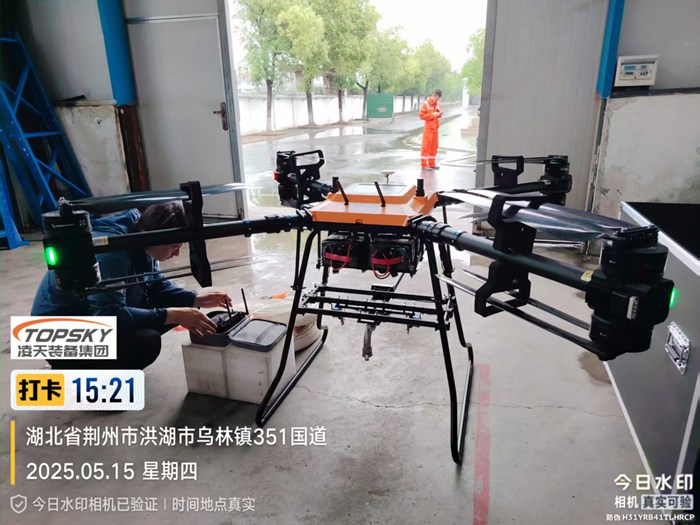 該無人機可裝載在消防車上,能快速啟動升空,通過特制高壓水帶與消防車水罐連接,消防車水罐內(nèi)部高效泡沫/水基滅火劑輸送到無人機平臺,在水槍噴口水平噴射出去,達到滅火的效果。