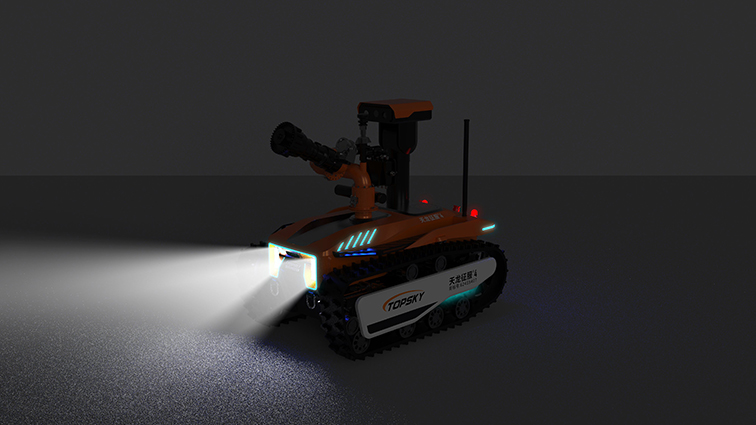 機(jī)器人采用無(wú)線(xiàn)遙控設(shè)計(jì),遙控器與監(jiān)視器一體/分離,可實(shí)時(shí)的顯示電池、內(nèi)部的各種信息,機(jī)器人狀態(tài)、現(xiàn)場(chǎng)溫濕度、有毒有害氣體濃度報(bào)警信息等控制機(jī)器人前進(jìn)、后退、轉(zhuǎn)向等運(yùn)動(dòng)。具備遠(yuǎn)程偵察能力,機(jī)身搭建升降云臺(tái)、高清攝像頭、熱成像攝像頭、氣體傳感器三類(lèi)環(huán)境感知設(shè)備和云臺(tái)控制設(shè)備,也可聯(lián)動(dòng)聲光報(bào)警模塊提醒消防人員或群眾,有效避免危險(xiǎn)。在通過(guò)遠(yuǎn)程偵察手段有效獲取現(xiàn)場(chǎng)火源信息后,機(jī)器人配備的大功率電機(jī)可以幫助消防人員將消防水袋拖拽至危險(xiǎn)火源區(qū)域進(jìn)行滅火,并能搭載各類(lèi)國(guó)內(nèi)、外的多種消防水泡,并能夠遠(yuǎn)程控制發(fā)射水或泡沫?;谒鋫涞氖耙裟K和揚(yáng)聲器模塊,拾取現(xiàn)場(chǎng)環(huán)境聲音,即使消防官兵未靠近消防現(xiàn)場(chǎng)也能夠聽(tīng)到搜救現(xiàn)場(chǎng)的群眾呼救聲,并通過(guò)揚(yáng)聲器模塊與群眾進(jìn)行現(xiàn)場(chǎng)對(duì)話(huà)。