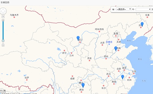 車(chē)輛信息管理功能,可在地圖上查閱所有車(chē)輛標(biāo)注當(dāng)前位置及點(diǎn)擊某個(gè)具體的車(chē)輛,顯示該車(chē)輛的車(chē)牌號(hào)、車(chē)輛類(lèi)型、車(chē)輛名稱、車(chē)輛狀態(tài)、車(chē)輛經(jīng)緯度坐標(biāo)、車(chē)輛及功能描述詳情。