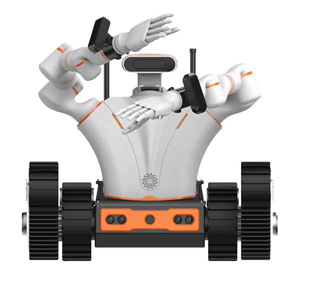 2、系統(tǒng)組成:主要由三大部分組成:遙控操作裝置底盤、具身雙機(jī)械臂。