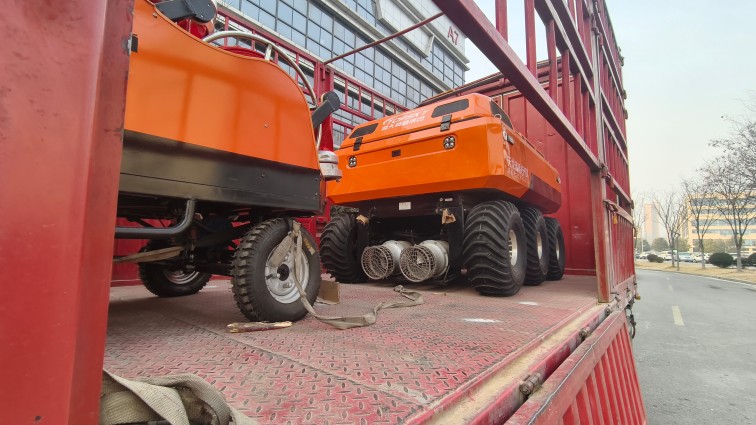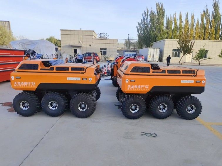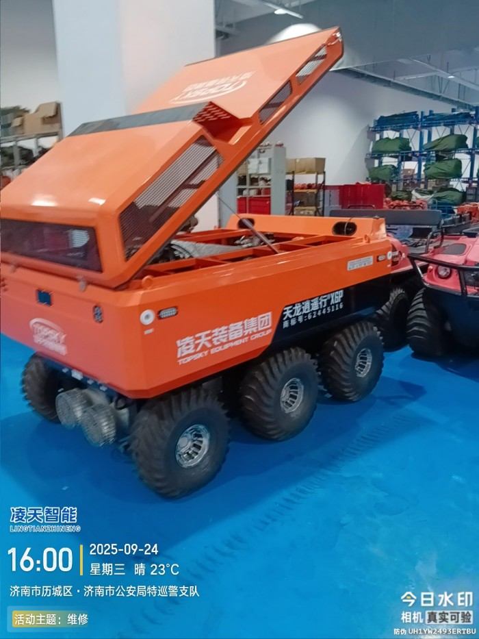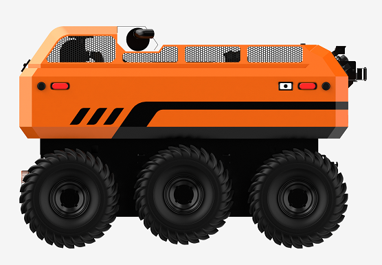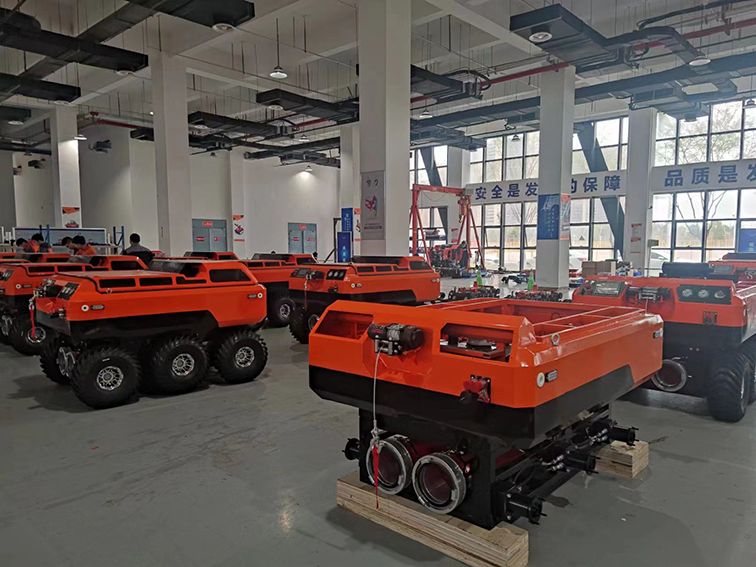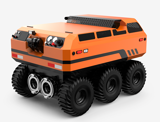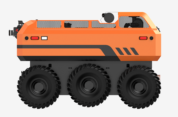 采用6×6輪式底盤,液壓驅(qū)動,裝有真空輪胎,另加配水下推進(jìn)器,增加水中行進(jìn)效率,水陸兩棲,可全地形行駛;