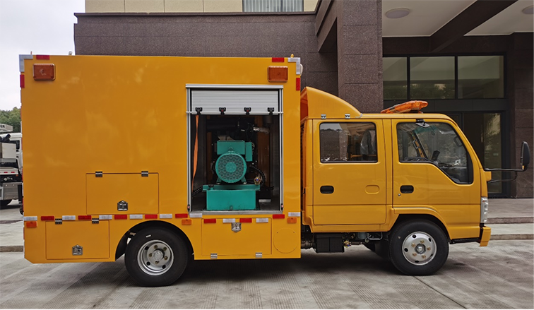 雙排座排澇車(1200m3),是在慶鈴二類汽車底盤的基礎(chǔ)上依據(jù)排水車的特點(diǎn),配置柴油發(fā)電機(jī)組、兩臺(tái)大流量便攜式潛水泵并整合照明設(shè)備等功能設(shè)計(jì)改裝成型的專項(xiàng)作業(yè)車,整車尺寸較小,通過性較強(qiáng),廣泛適用于各類搶險(xiǎn)現(xiàn)場(chǎng)。