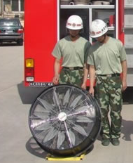 適用于有進風(fēng)和出風(fēng)的火場建筑物,利用排煙機的正壓把新鮮空氣通過建筑物進風(fēng)口吹進建筑物內(nèi),把煙霧從建筑物內(nèi)吹出,清除火場煙霧,使消防員能夠進入建筑物內(nèi)的火場進行滅火。根據(jù)需要可以調(diào)節(jié)風(fēng)扇的出風(fēng)口的角度和風(fēng)扇的轉(zhuǎn)速. 利用高壓水作動力,驅(qū)動水動機運轉(zhuǎn),帶動風(fēng)扇排煙, 具有防爆功能,重量輕,移動方便.
