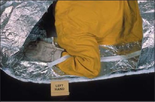 1)展開避火罩時,一定要用手臂和腿、腳固定住避火罩,這樣既可以防止避火罩被風(fēng)吹走,又可以隨時進出避火罩內(nèi);