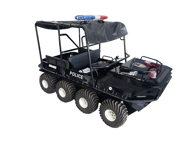 在復(fù)雜惡劣的地形條件和自然環(huán)境下,水陸兩棲全地形車可以讓搜救隊員和攜帶的救援裝備快速到達(dá)救援現(xiàn)場,減少徒步帶來提供消耗,完成最后一公里最好五分鐘緊急救援任務(wù)。水陸兩棲全地形車可配備點到絞盤、救援擔(dān)架組件、探照燈、警示燈、警報器、脫鉤、破拆工具等裝備, 給救援團(tuán)隊提供救援保障,更安全的解救傷員和疏散群眾。
