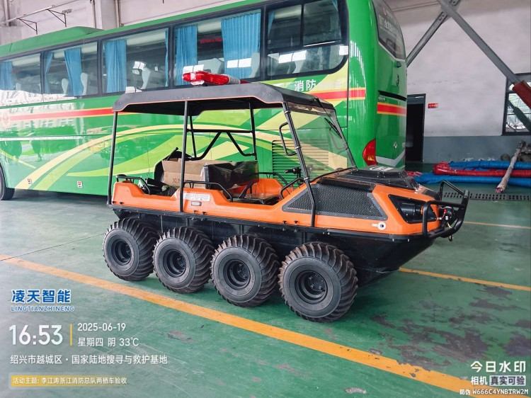針對(duì)水災(zāi)頻發(fā)的地區(qū),水域救援任務(wù)必不可少。但往往洪澇災(zāi)害、城市內(nèi)澇往往伴隨著惡劣的天氣和崎嶇的地形,沖鋒舟需要多次搭載不同交通工具并數(shù)次轉(zhuǎn)移,水陸兩棲全地形車可以輕松通過水淹、泥濘、沼澤等環(huán)境,無需人力搬運(yùn),實(shí)現(xiàn)陸地駕駛和水中行走自由切換,以最快的時(shí)效抵達(dá)現(xiàn)場(chǎng)實(shí)施救援。