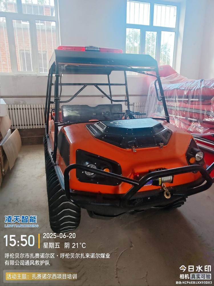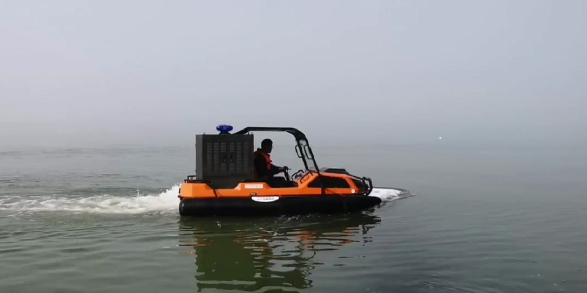 在復(fù)雜惡劣的地形條件和自然環(huán)境下,水陸兩棲全地形車可以讓搜救隊(duì)員和攜帶的救援裝備快速到達(dá)救援現(xiàn)場,減少徒步帶來提供消耗,完成最后一公里最好五分鐘緊急救援任務(wù)。水陸兩棲全地形車可配備點(diǎn)到絞盤、救援擔(dān)架組件、探照燈、警示燈、警報(bào)器、脫鉤、破拆工具等裝備, 給救援團(tuán)隊(duì)提供救援保障,更安全的解救傷員和疏散群眾。