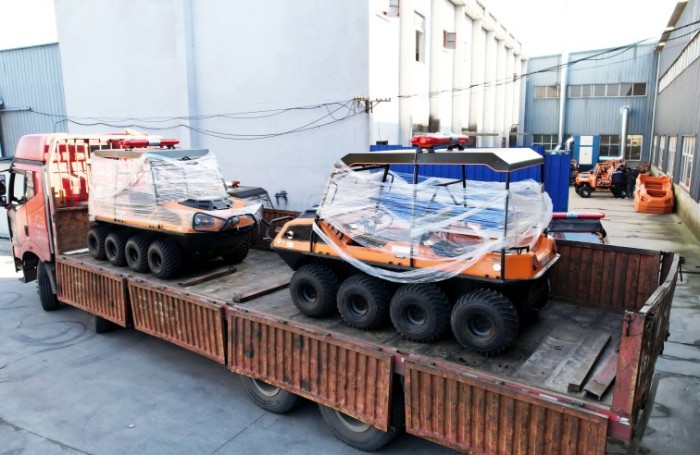 針對(duì)水災(zāi)頻發(fā)的地區(qū),水域救援任務(wù)必不可少。但往往洪澇災(zāi)害、城市內(nèi)澇往往伴隨著惡劣的天氣和崎嶇的地形,沖鋒舟需要多次搭載不同交通工具并數(shù)次轉(zhuǎn)移,水陸兩棲全地形車可以輕松通過水淹、泥濘、沼澤等環(huán)境,無需人力搬運(yùn),實(shí)現(xiàn)陸地駕駛和水中行走自由切換,以最快的時(shí)效抵達(dá)現(xiàn)場實(shí)施救援。