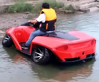 水陸兩棲四輪摩托艇:顧名思義它是既能在陸上行駛又能在水中航行的兩棲類產(chǎn)品,是車與船的結(jié)合體。