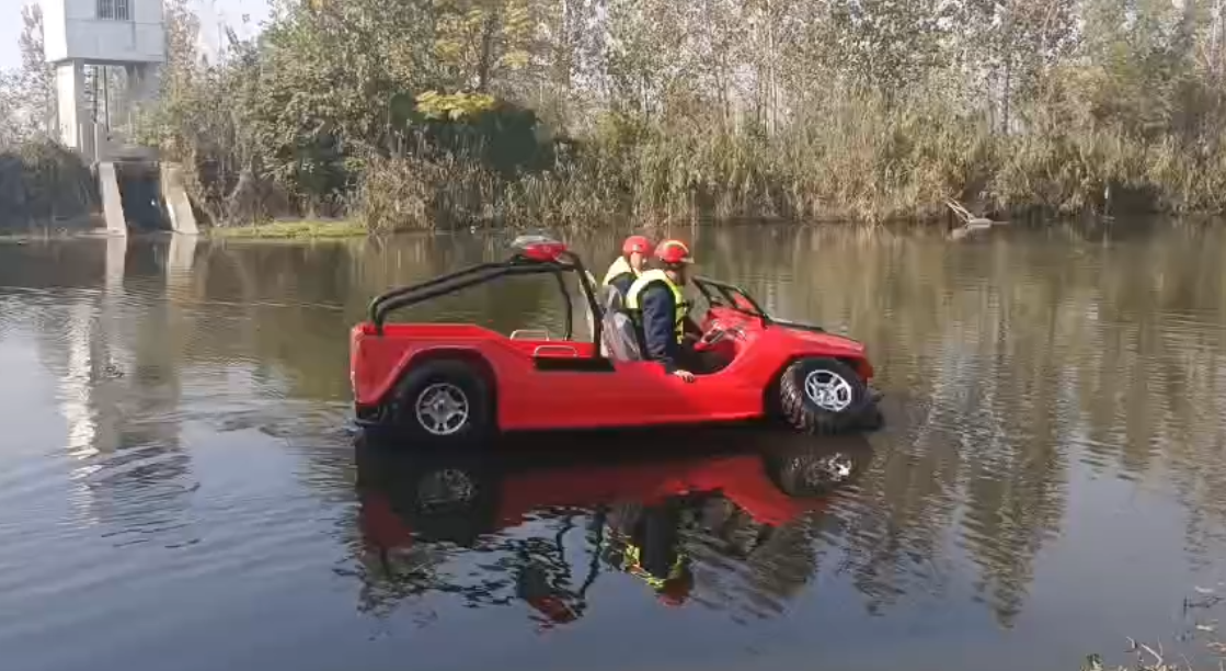 在復(fù)雜惡劣的地形條件和自然環(huán)境下,水陸兩棲車可以讓搜救隊(duì)員和攜帶的救援裝備快速到達(dá)救援現(xiàn)場(chǎng),減少徒步帶來(lái)提供消耗,完成最后一公里最好五分鐘緊急救援任務(wù)。