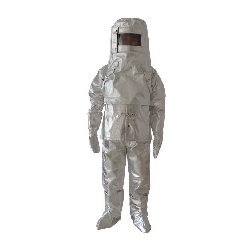 該服裝由鋁箔耐高溫隔熱布、阻燃隔熱:層及舒適層組成,具有耐磨、隔熱、抗輻射熱等性能?;济媪喜缓蕖⒉AЮw維,具有重量輕、耐高溫、耐折以及對人體無毒害等優(yōu)點(diǎn),能有效地保障消防隊(duì)員和高溫作業(yè)人員不被烈焰、高溫灼傷。是消防隊(duì)員在火場及高溫事故現(xiàn)場進(jìn)行搶險作業(yè)的理想防護(hù)服裝。