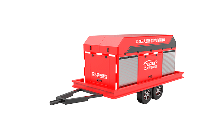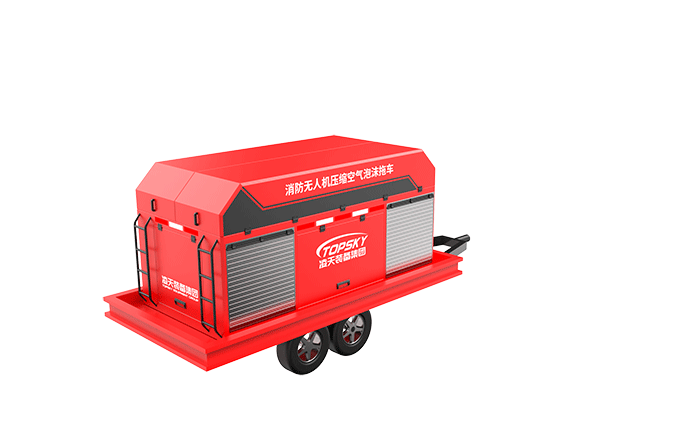 消防無人機(jī)壓縮空氣泡沫拖車,采用中置軸掛車為運載平臺,搭載我司自主研發(fā)的水帶系留式重型消防滅火無人機(jī)和壓縮空氣泡沫系統(tǒng)(CAFS),自帶水和泡沫滅火劑,具備高效滅火(高效泡沫隔離、冷卻、窒息)、高空破窗,自動避障、展開快速、精準(zhǔn)鎖定火源、多角度控制火點、空中作戰(zhàn)時間長等特點。機(jī)身采用純碳纖維和航空鋁材料制作而成,減輕機(jī)身自重同時提高物質(zhì)載重量,該無人機(jī)具備陸空兩棲功能,可以在地面行駛,行走系統(tǒng)可快拆;可噴射水及壓縮空氣泡沫,使用超輕型浮力水帶噴射的壓縮空氣泡沫密度更輕,可以能快速啟動升空,拖帶水帶升至高空,系統(tǒng)操作穩(wěn)定性更強(qiáng)。