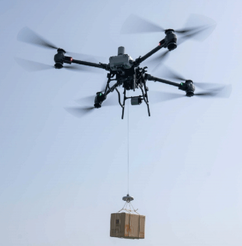 機(jī)載緩降器卷揚(yáng)機(jī)依靠無人機(jī)的靈活性,可快速對現(xiàn)場進(jìn)行作業(yè)部署,提升貨物時有較強(qiáng)的機(jī)動性能。設(shè)備操作簡單,控制明了,可一鍵實(shí)現(xiàn)對貨物的上升、下降、放貨,具備一鍵斷繩功能,當(dāng)設(shè)備回收受阻時,一觸發(fā)緊急斷繩機(jī)制,保障無人機(jī)的安全