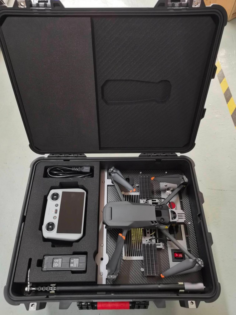 消防無人機(jī)主體為碳纖維材質(zhì),機(jī)臂可快速折疊,整機(jī)重量輕便、體積小巧,方便攜帶和快速展開。機(jī)身下方有通用載荷接口,可快速換裝不同任務(wù)載荷,通用載荷接口最大可負(fù)載5kg任務(wù)載荷,載重能力優(yōu)秀。整機(jī)空載續(xù)航大于45min,超長航時可滿足大部分應(yīng)用場。消防無人機(jī)配置有RTK和毫米波雷達(dá),可實現(xiàn)厘米級定位精度和避障能力。