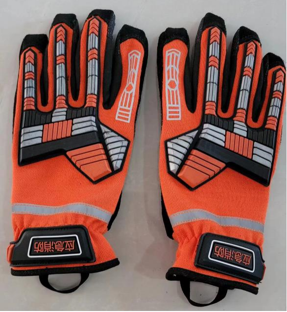 采用立體剪裁,符合人體工程學(xué),更加貼合手部,增加靈活性和舒適性。主體顏色采用橘紅色和黑色材料,與搶險救援服搭配。指尖采用翻轉(zhuǎn)式設(shè)計,增加指尖的貼合度。五指指尖補強耐磨布,增加指尖保護,拇指指尖具有觸屏功能。手背關(guān)節(jié)處采用芳綸雙面針織布和TPR防撞條,可達到防砸抗震,下端為銀色反光標記,寬度為1cm銀色反光條。