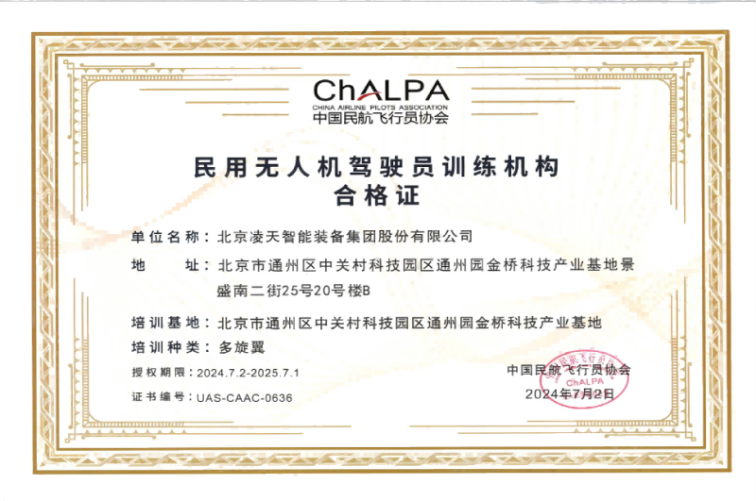 資格類民用無人機駕駛員訓練機構合格證(北京凌天)