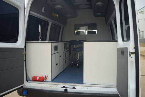 2) 車內(nèi)工作臺(tái)面采用雙面覆膜優(yōu)質(zhì)實(shí)芯理化板,耐強(qiáng)酸強(qiáng)堿,防水,防腐蝕,耐刮,耐磨,耐抗擊,不變形,無毒,易清潔。